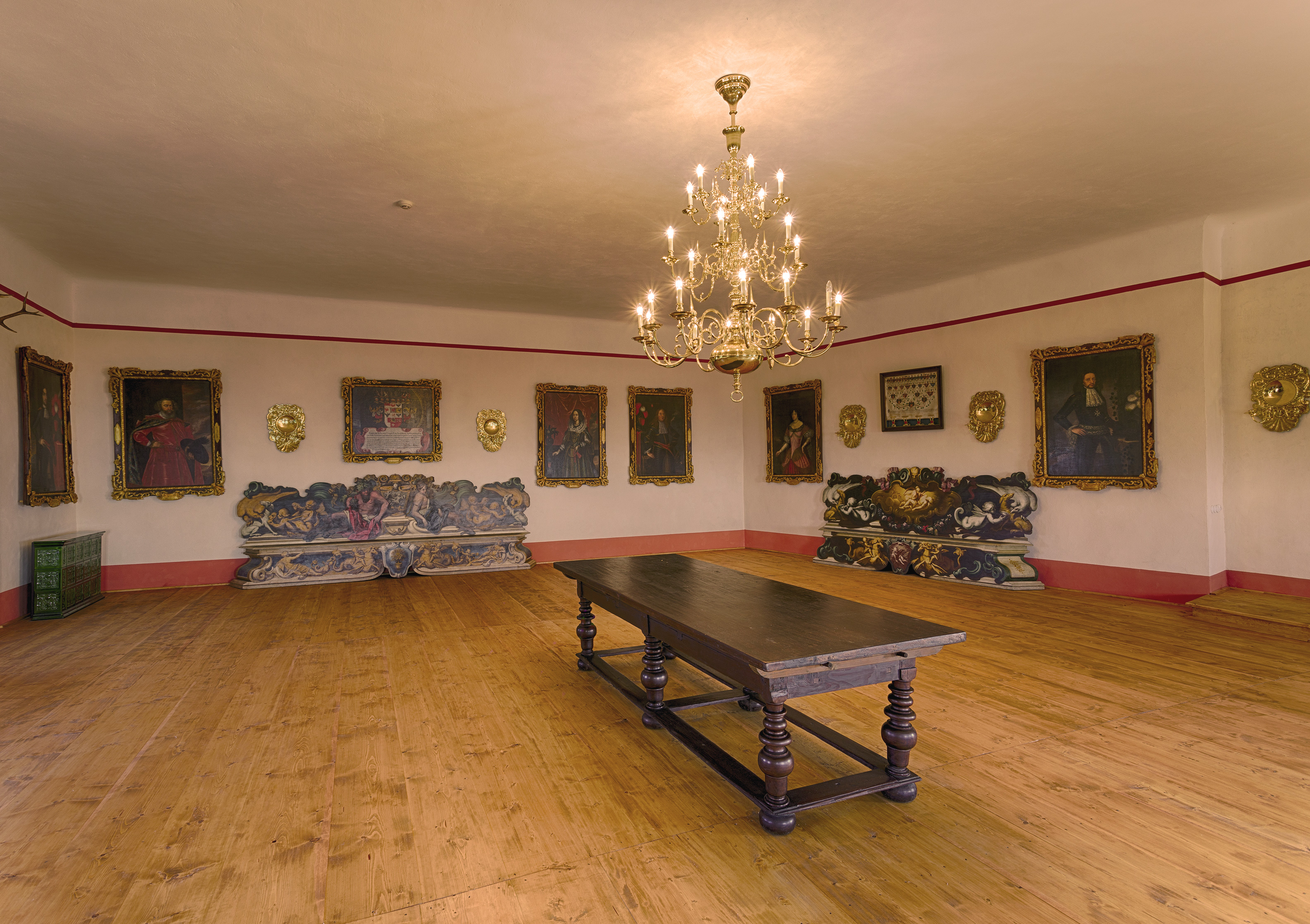 Okruh jen s průvodcem. Zahrnuje taneční sál, černou kuchyň, zbrojnici, knihovnu, gotické a renesanční prostory, přírodovědecké sbírky a rodinné muzeum Berchtoldů, egyptologické sbírky a vyhlídkovou věž.